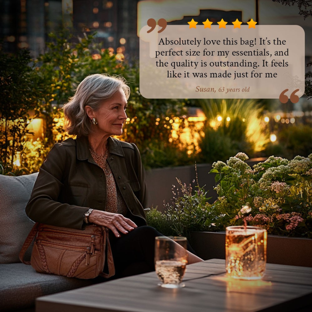 Koža je mekša nego što sam zamišljala, a kvalitet je nenadmašan. Nosim je svakog dana i samo postaje lepša vremenom. Toplo preporučujem svakoj ženi koja želi torbu koja traje.